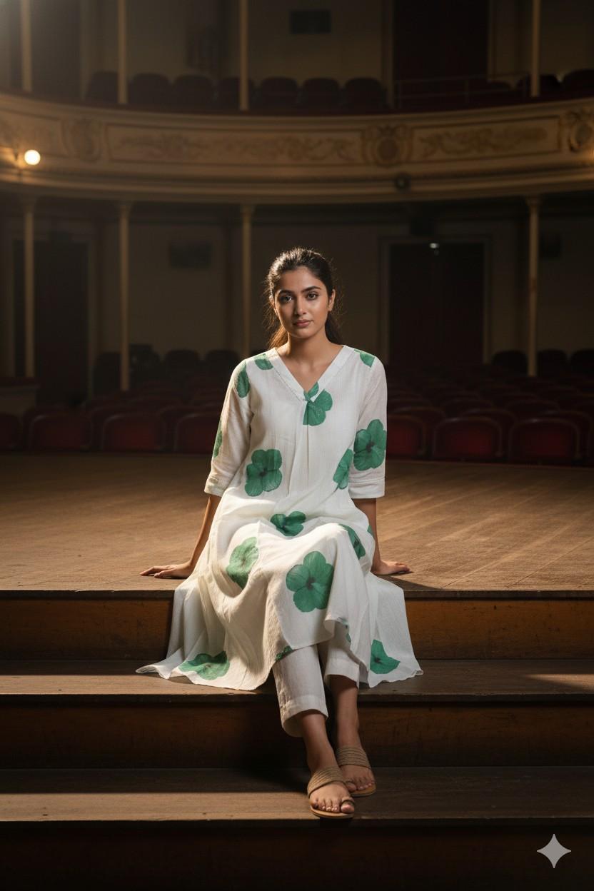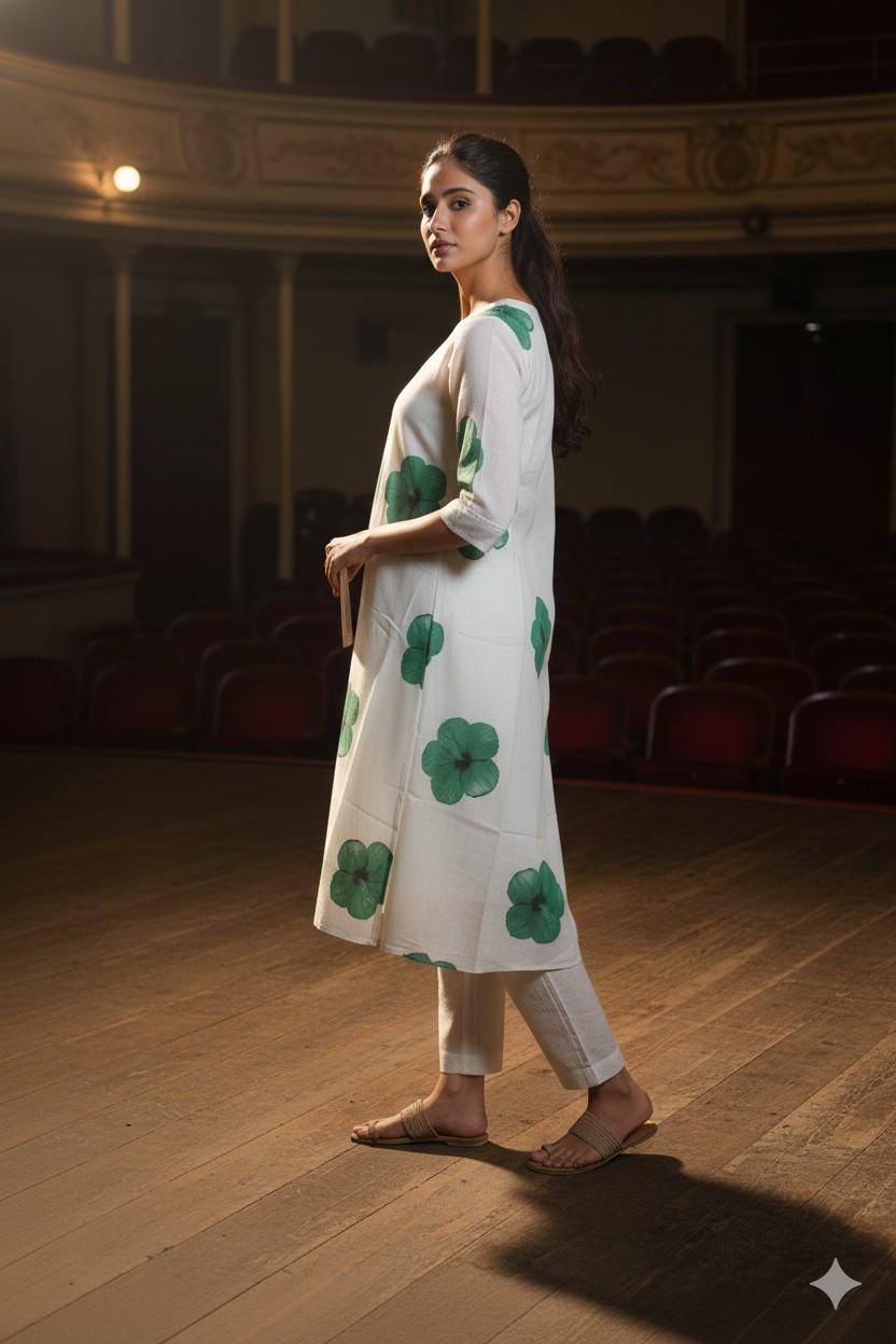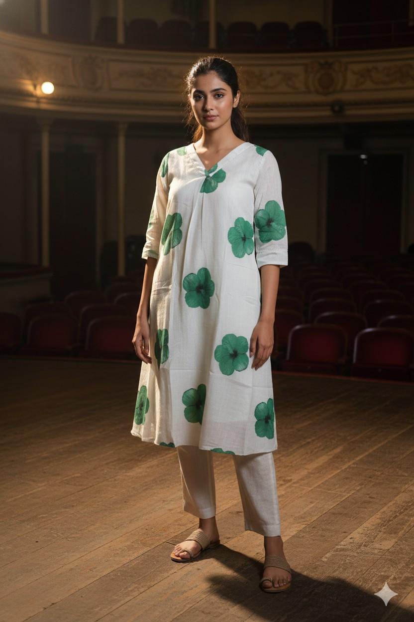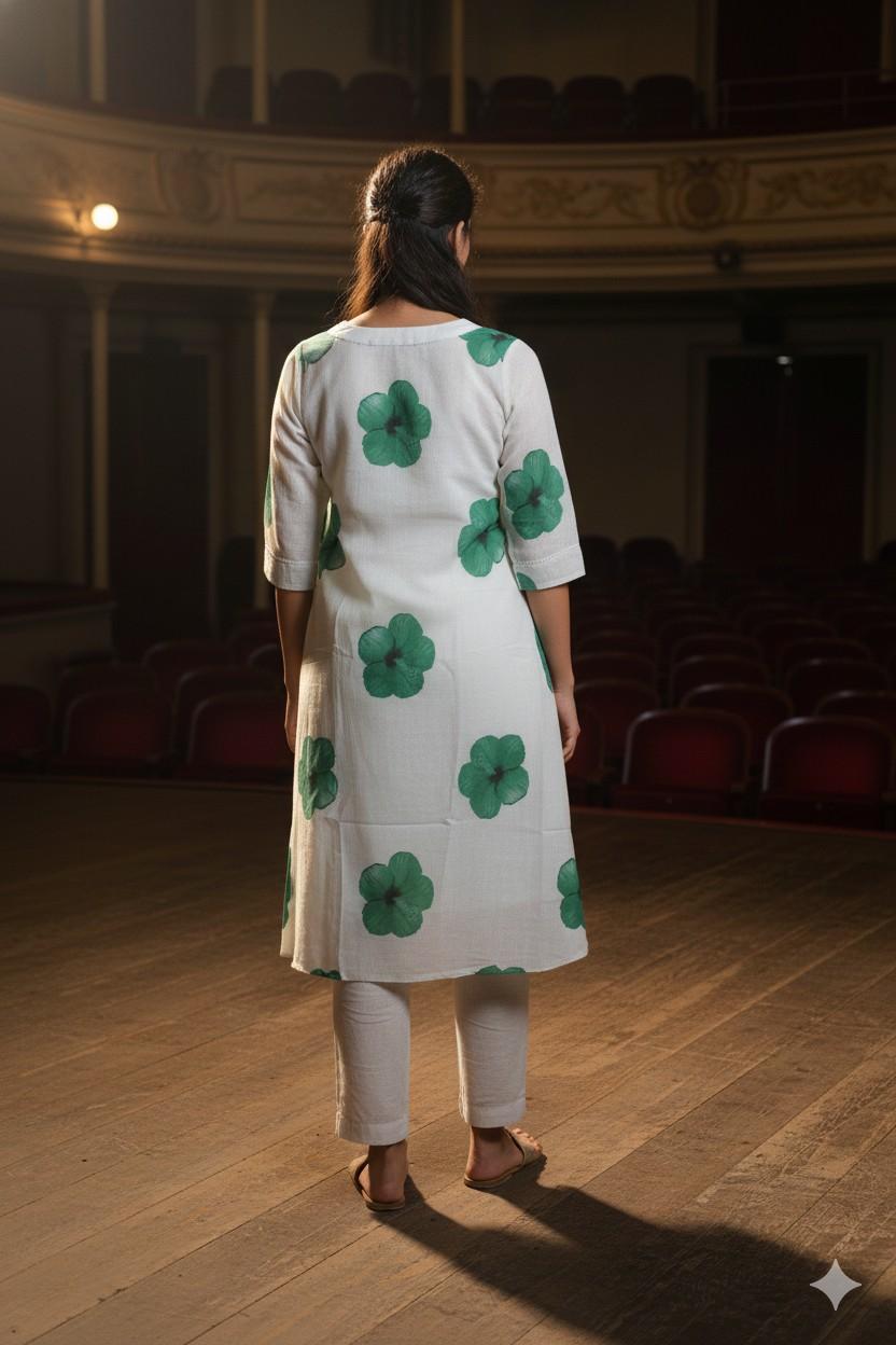 Cream and Green Cotton Fabric (Top Only)